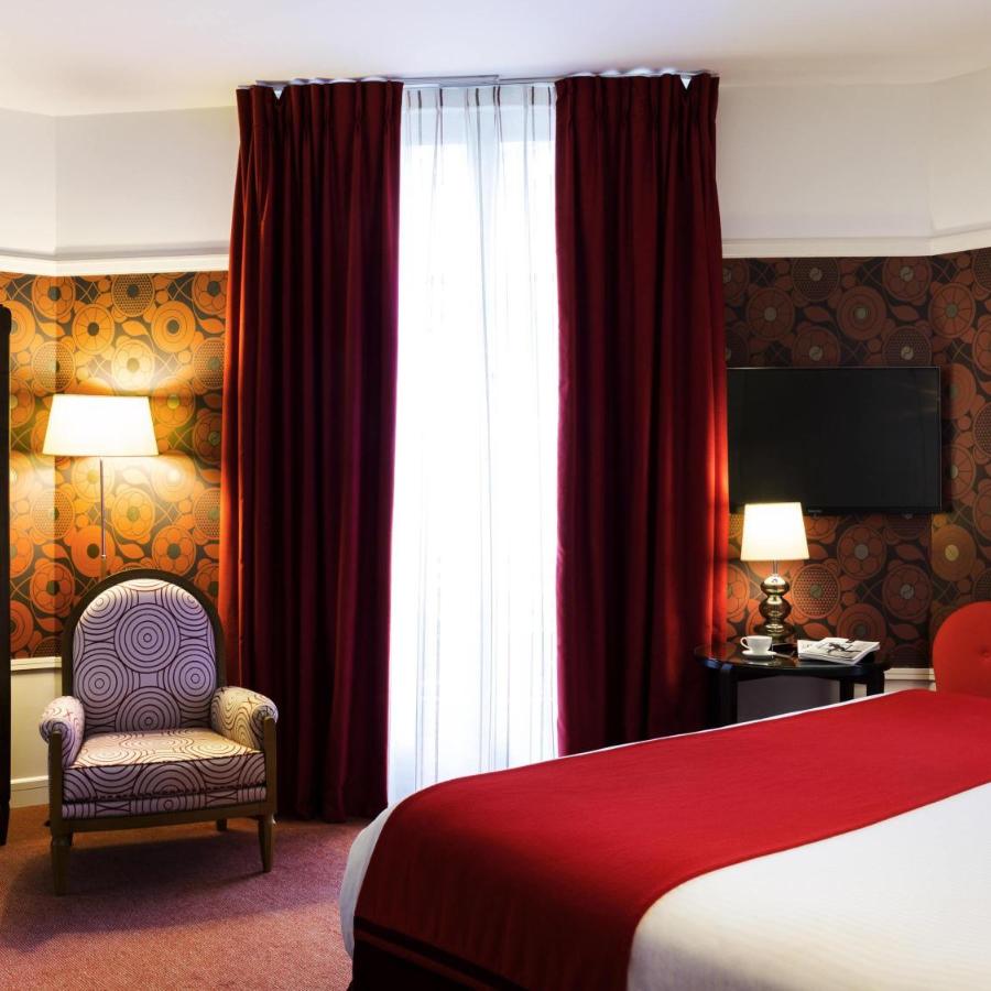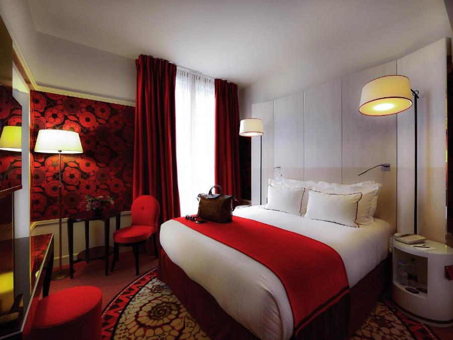 Les 80 chambres, toutes climatisées et insonorisées, déclinent une atmosphère intime dominée par des tons rouges, clin d’œil aux salles de théâtre et au monde du cinéma. L’esprit du lieu s’y prolonge jusque dans les choix décoratifs, où les tapisseries originales et les matières chaleureuses s’associent à un mobilier sobre et élégant. Certaines chambres disposent d’un espace plus généreux ou d’une vue sur la place de la République, tandis que d’autres misent sur le confort d’un cocon plus compact mais tout aussi soigné.
